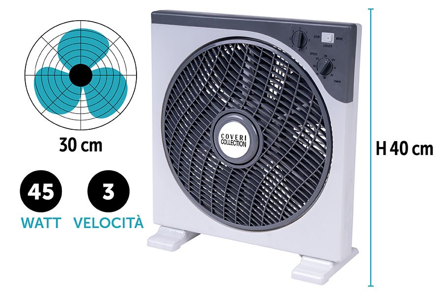 VENTILATORE QUADRO 45W 30CM TIMER B/GRIG.PD72