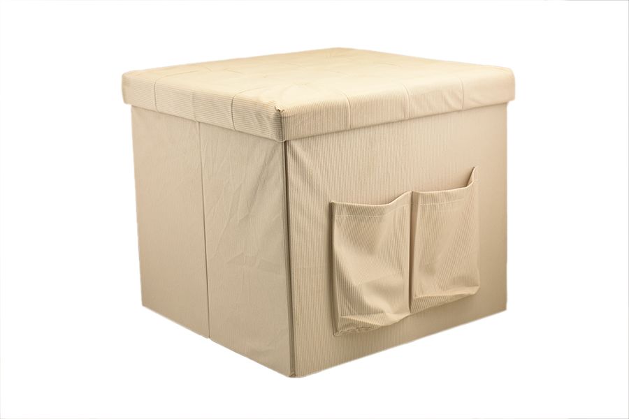 POUF CORDUROY C/TASCHE 50X50CM PANNA