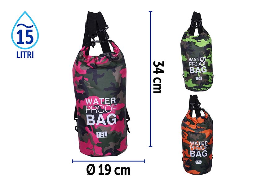 BORSA IMPERM.C/TRACOLLA PVC 15LT CAMOU.3ASS