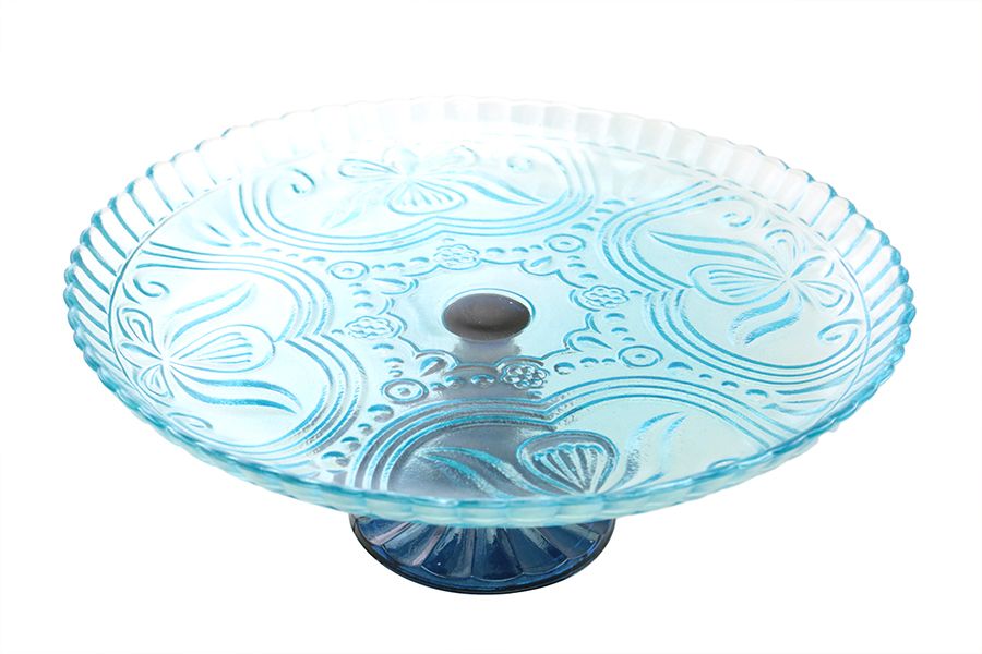 ALZATA VETRO DOLCI H11.5+D30.5CM AZZURRO/BLU