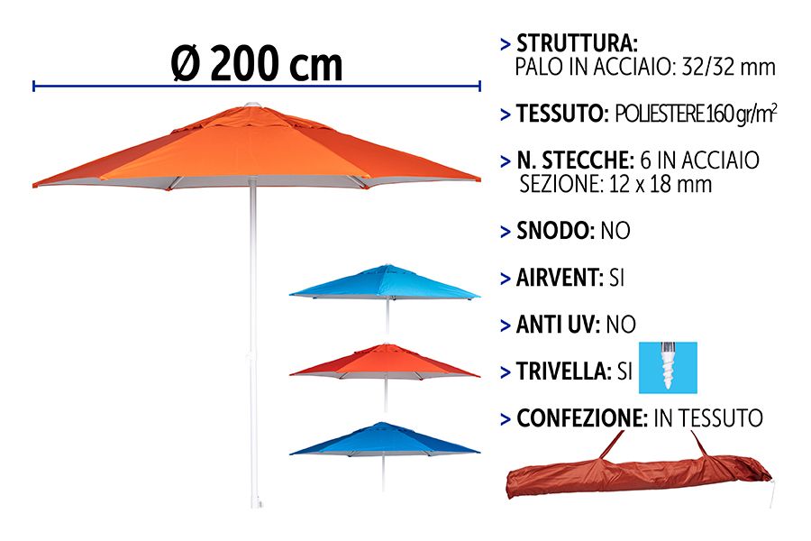 Stai recensendo:OMBREL.PALO CENTR.200 32/32 160G POLY. TU 4AS