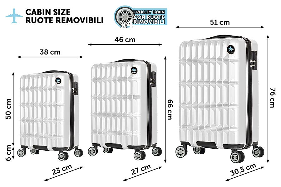 Stai recensendo:SET 3 TROLLEY H.56/66/76 NORVEGIA BIANC COVER