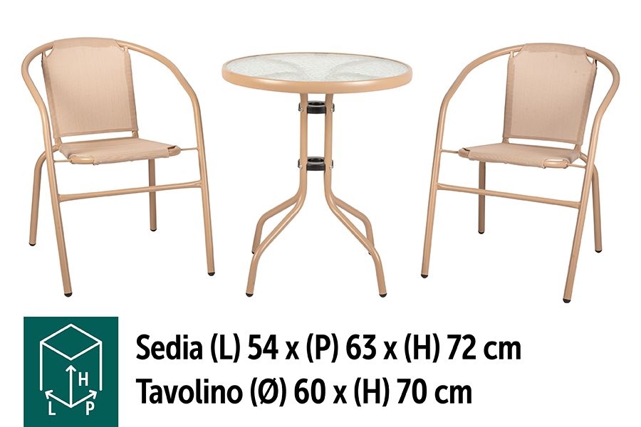 SET BISTRO' IN ACC.+ 2 SEDIE+TAV.D.60CM SABB
