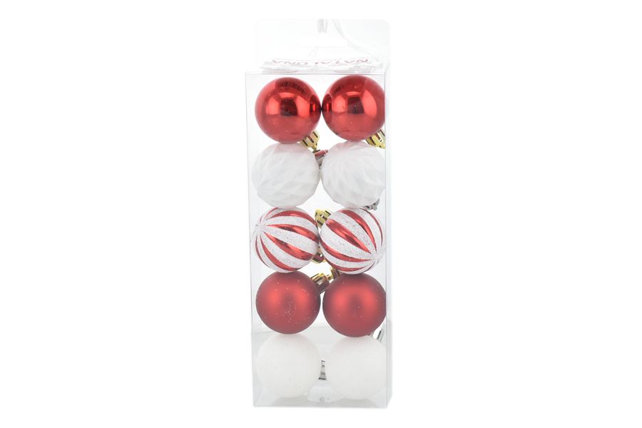 BOX 10 SFERE 4CM COMB.SPICCHI BIA/ROSSO